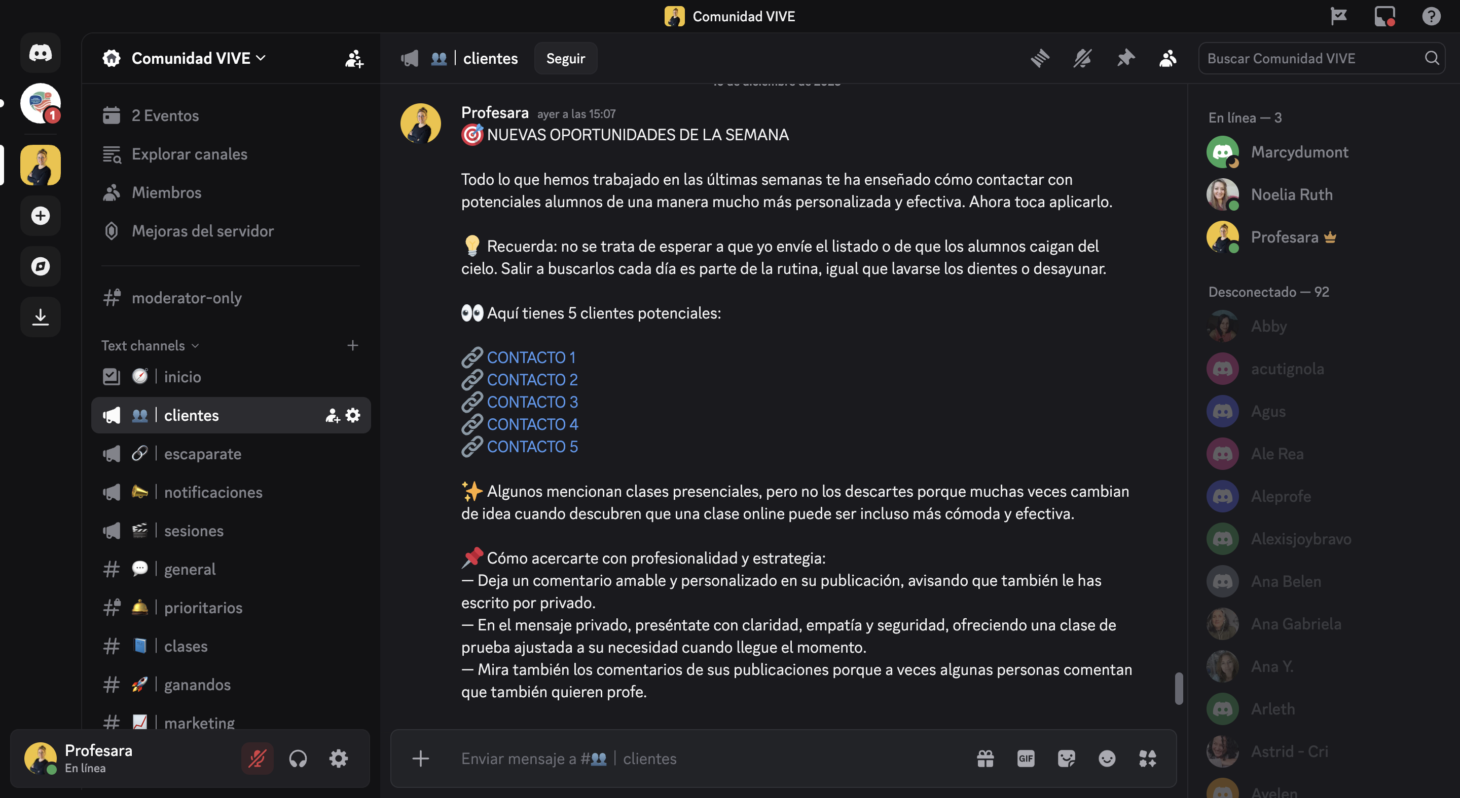 La Comunidad VIVE es el espacio donde la teoría se convierte en práctica y el aprendizaje en resultados. Aquí encuentras el acompañamiento, la energía y la claridad que necesitas para avanzar sin miedo, mantener el foco y construir tu camino junto a personas que comparten tu misma vocación.