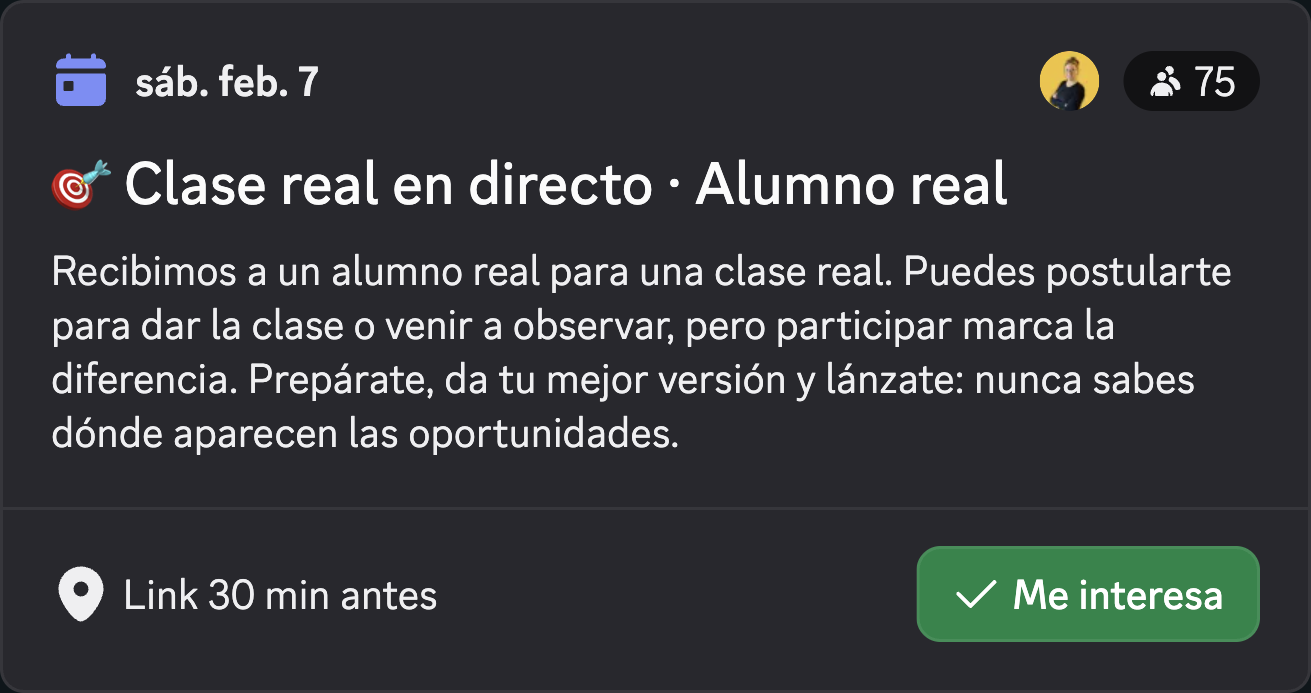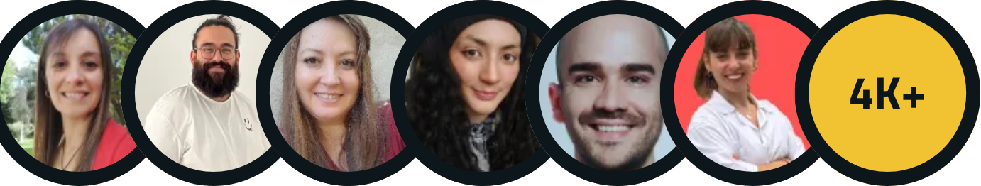 Avanza acompañado/a de una comunidad activa y comprometida. Tendrás mentorías semanales en directo, prácticas con alumnos reales, feedback y listados de potenciales clientes cada semana. Aquí no caminas solo/a: compartes, aplicas y creces junto a personas que viven el mismo proceso que tú.